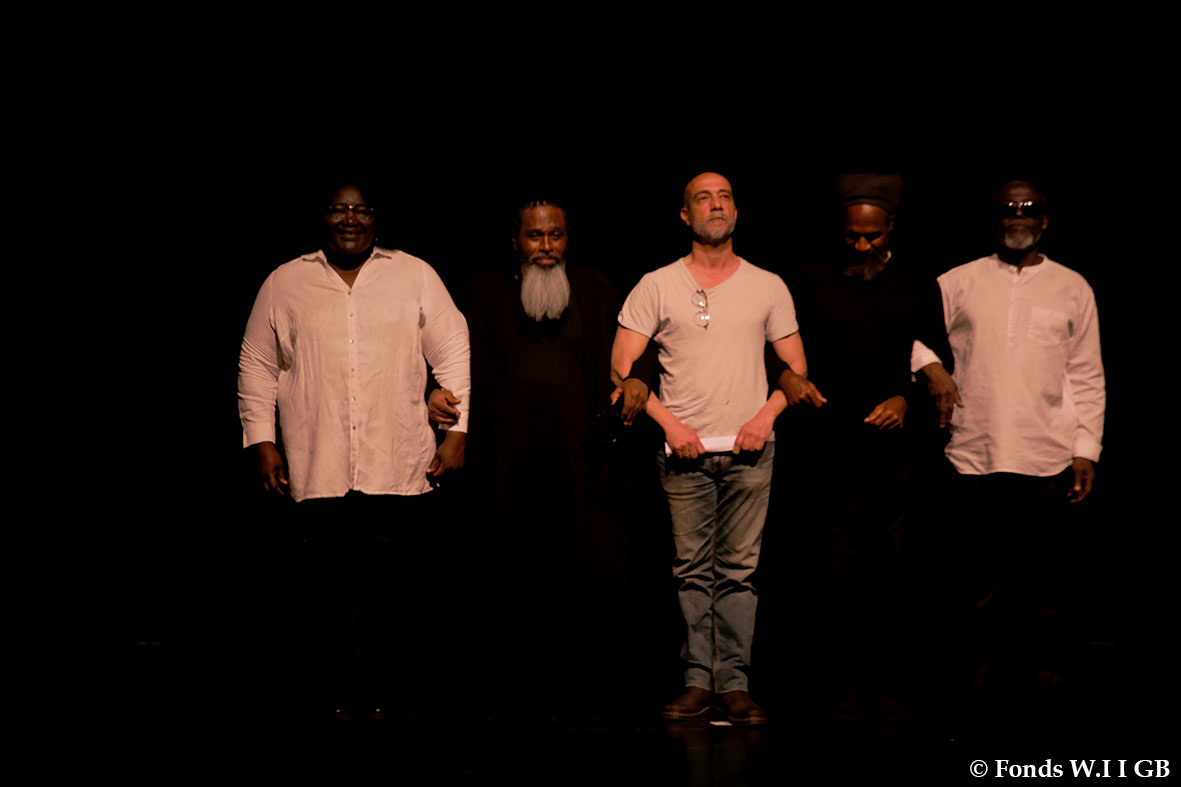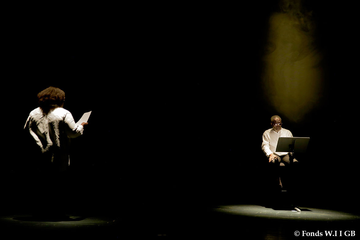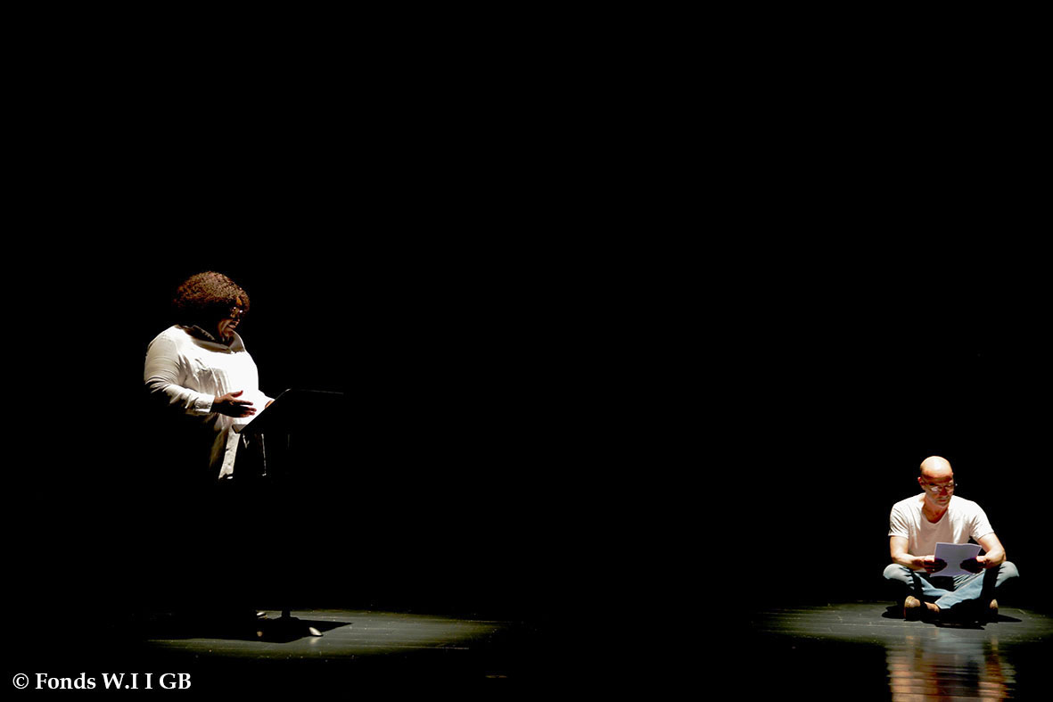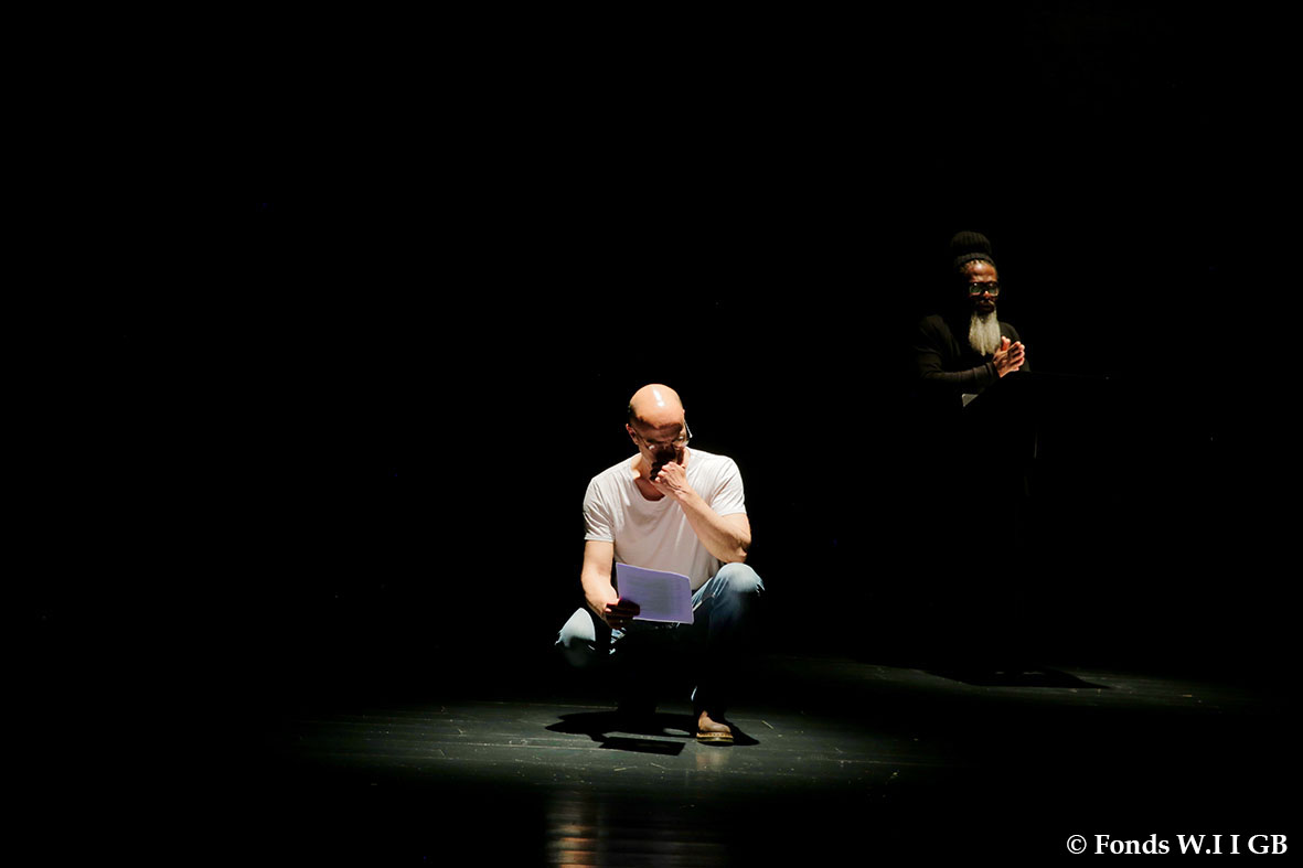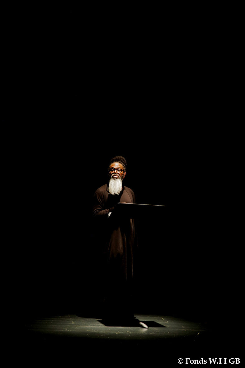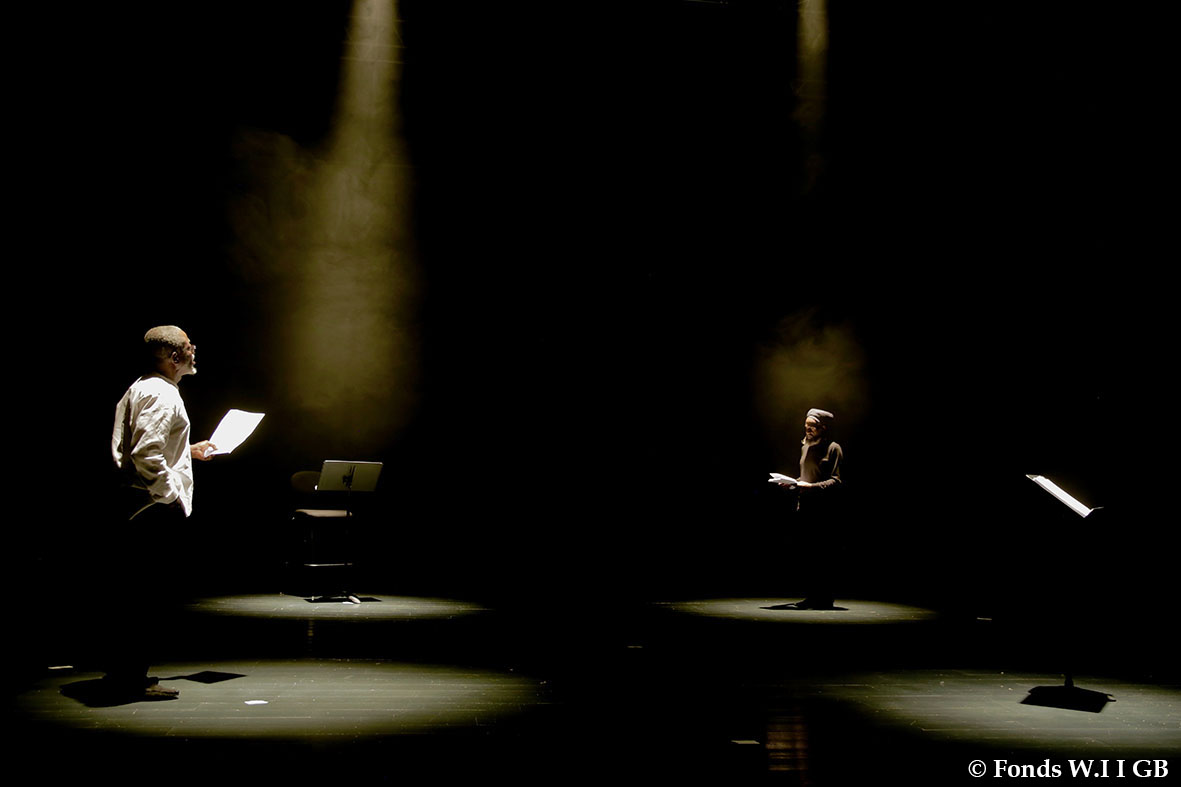 En résidence à l’Auditorium Sophie Dessus, du 24 avril au 5 mai dernier, la compagnie a quelque peu éprouvé le texte, après en avoir lu des fragments, l’an dernier, aux Zébrures du Printemps, à Limoges. La distribution est toujours en cours, mais sur la scène, jeudi 4 mai, on a pu écouter les voix de Yaya Mbilé Bitang, de Philippe Richard, de Dédé André Duguet, de Fargass Assande et de Soeuf Elbadawi.