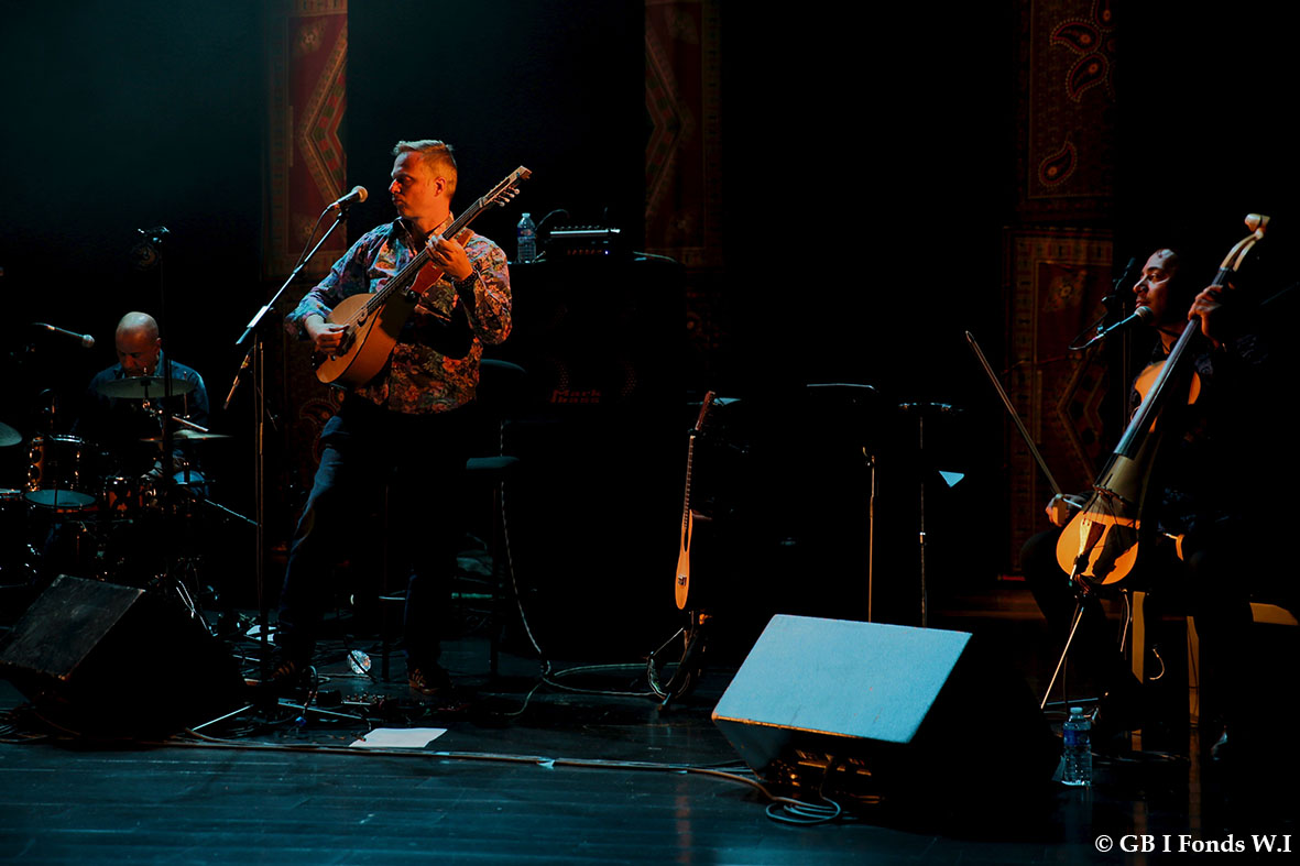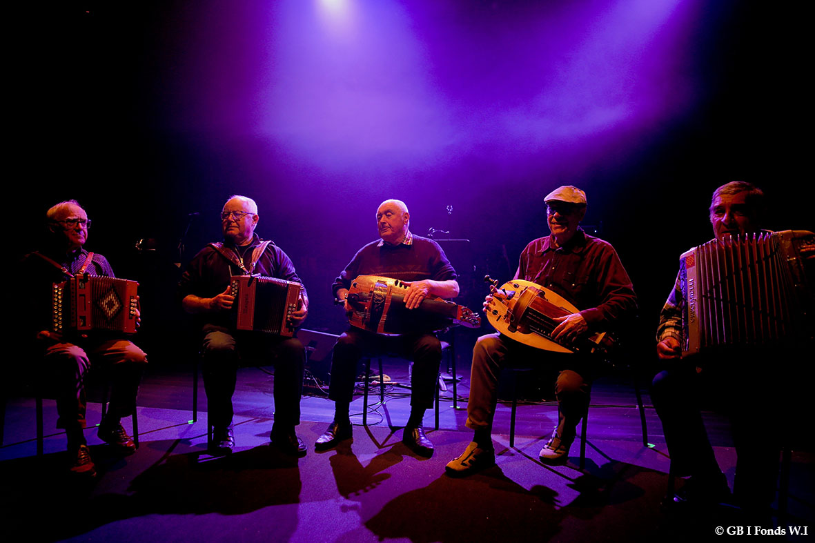 Mwezi WaQ. et ses guest: Jean-Claude Dezes des Las Chambas Finas Daus Condats et Soeuf Elbadawi. Les cinq interprètes des Las Chambas… à la vielle et à l’accordéon, Mangane Ousseynou à la guitare et au balafon.