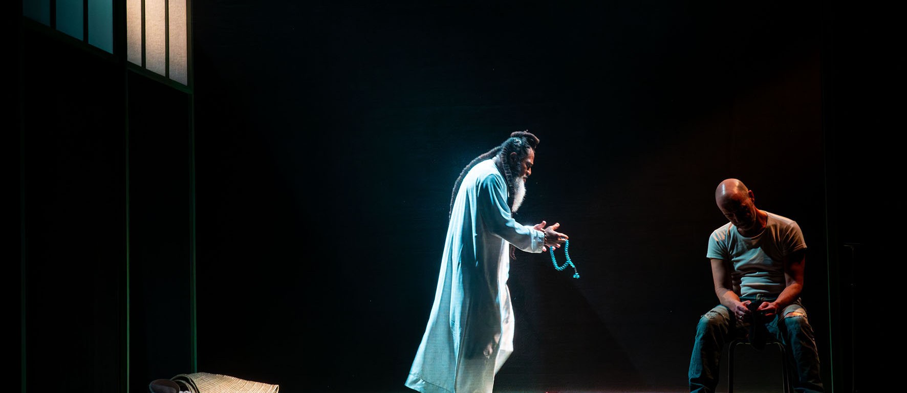 Lors d’un des bords plateaux au programme, l’auteur a essayé d’expliquer la métaphore que représente un tel projet pour les siens, le geste d’exorcisme figuré notamment par cette scène qui tourne sur elle-même, qui en rajoute aux codes de la dramaturgie épousée par cette proposition faite par la compagnie comorienne de théâtre BillKiss* I O Mcezo*. La scénographie, signée Margot Clavière, recycle des codes et des usages que les traditions de l’archipel ne sauraient renier. Reste à savoir. Gaucel, le personnage central, est-il vraiment le début et la fin de cette histoire ou n’était-il qu’un prétexte au récit ? Le fardeau que porte ce personnage blanc du début à la fin du spectacle est-il comparable au peuple qui se vit ici en mode survie ? Gaucel vient de Gaucelm, le troubadour d’Uzerche, où a été écrite en partie la pièce. Le pitch raconte qu’il s’est fait serrer dans une boîte de nuit, en compagnie d’opposants notoires. Il serait rentré aux Comores par la « petite porte », par Mayotte, à l’instar de l’État français lui-même, au début de l’épisode colonial. Gaucel est « blanc », mais rappelle tout aussi bien Alberi, personnage également « blanc » dont se saisit le texte à un moment. « Blanc n’est pas toujours blanc, dit l’auteur ,bien qu’il le soit toujours un peu ». La pièce – un polar politique à Moroni – souligne deux cents années d’histoire oubliée ou méconnue entre la France et les Comores. Le bouche à oreille a fait le reste. Les spectateurs sont venus de tous les milieux, comoriens comme non-comoriens, collégiens comme universitaires, férus de géopolitique ou non. Comme l’explique un spectateur : « Tout le monde parle des Comores et de la France, de la complexité de cette relation, mais la pièce fait énormément de place à la déshumanisation d’un peuple, qui se vit au travers du blanc et du dominant. On y questionne l’humanité qui est en nous. Et en cela, je trouve qu’elle est universelle ».